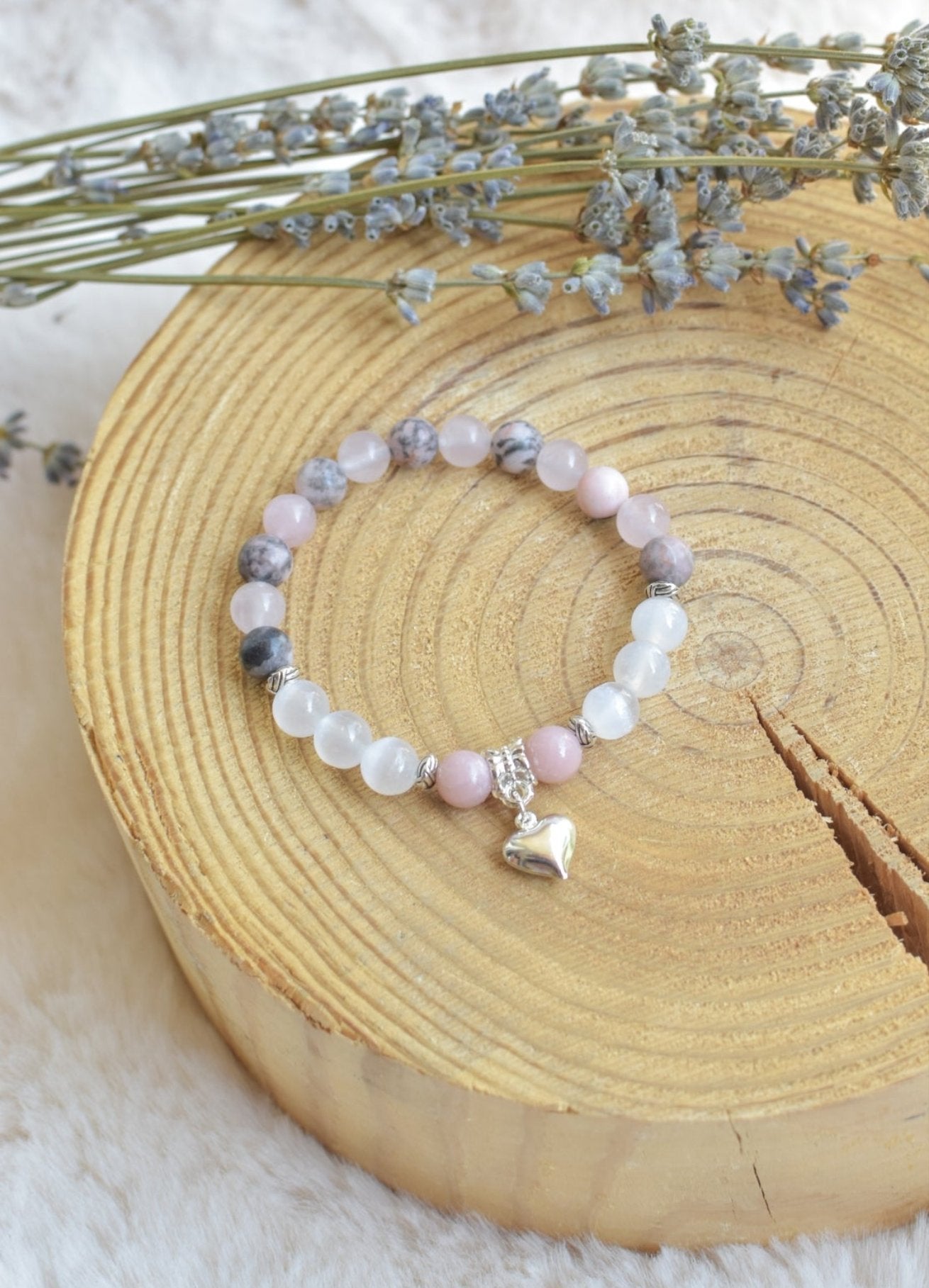 - Jaspe zébrée rose : compassion, aide à aimer les autres, équilibre le Ying et Yang, anti-stress
