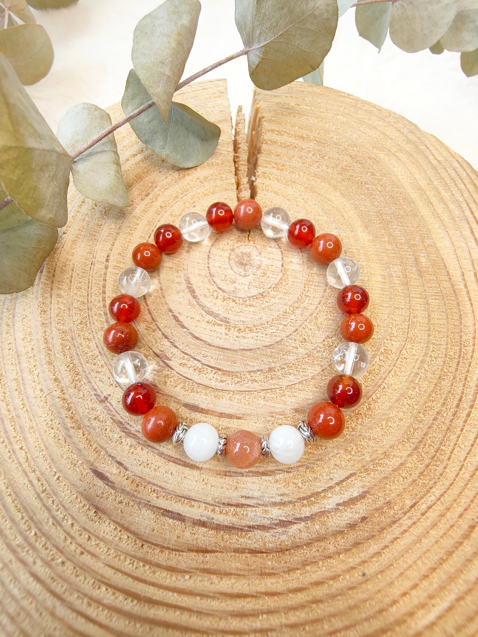 Vertus : Ce bracelet vous accompagnera dans la concrétisation de vos projets bébé. Comme toutes les pierres rouges, elles agissent sur le chakra racine et sera aussi bénéfique lors de vos menstruations.